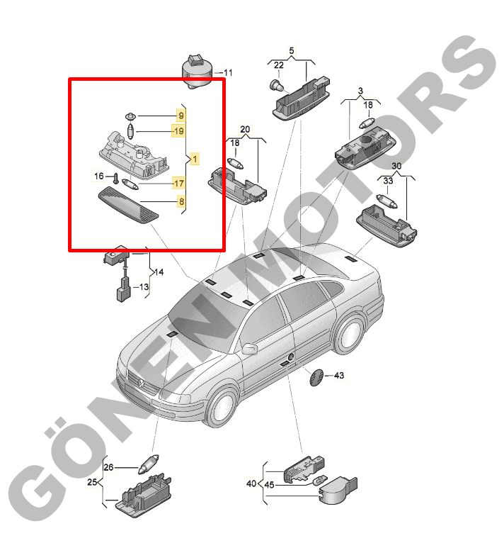 OEM uyumlu Passat B5 / B5.5 tavan lambası