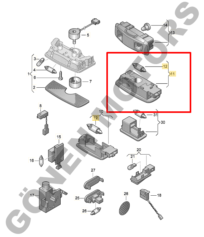 Parça Adı: Ön okuma lambası / iç tavan aydınlatması