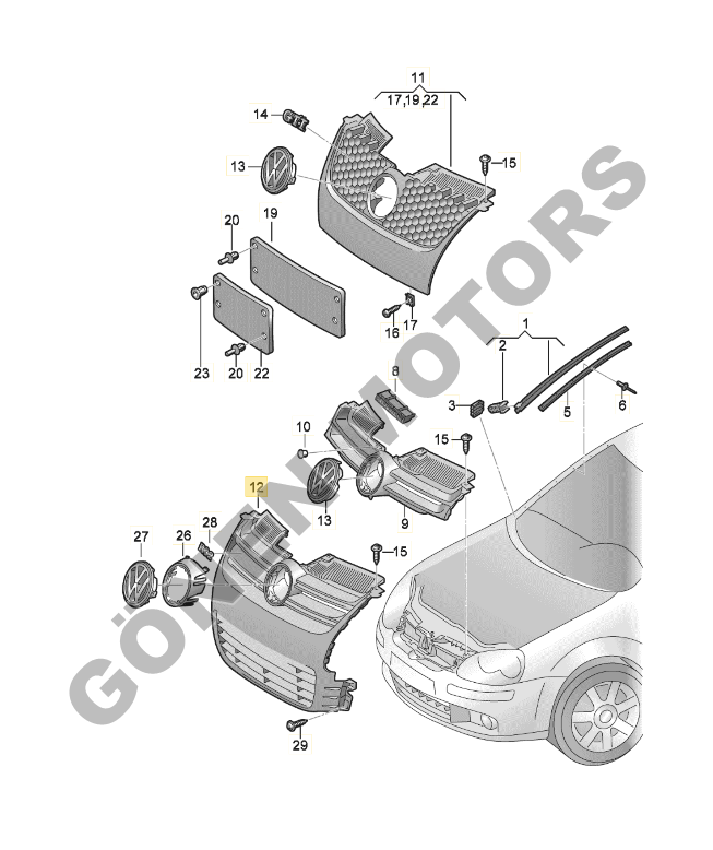 1K5 853 651 ön panjur ve 1K5 853 600 ön panjur arma seti, Golf 5 ve Jetta modelleriyle tam uyumlu orijinal tasarım parçalarından oluşur. Aracınızın ön görünümünü yenilemek, kırılmış veya yıpranmış panjur ve armayı değiştirmek için birebir uyumlu yüksek kalite yedek parçadır.