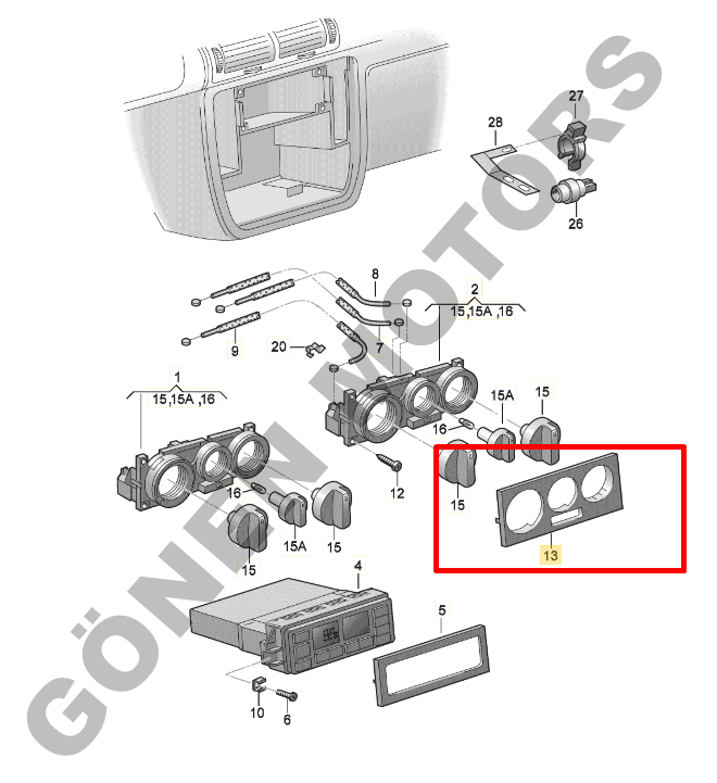6X0 819 075 dürbün kumanda panel kapağı, Polo 6N ve 6N2 modellerinde havalandırma – ısıtma kontrol düğmelerinin bulunduğu orta konsol bölümünde kullanılan dekoratif kapak parçasıdır. Zaman içinde çatlayan, kırılan, güneşten dolayı rengi solan veya tırnakları kopan trim panelinin yenilenmesi için birebir orijinal ölçülerde tasarlanmış bir kaplamadır.