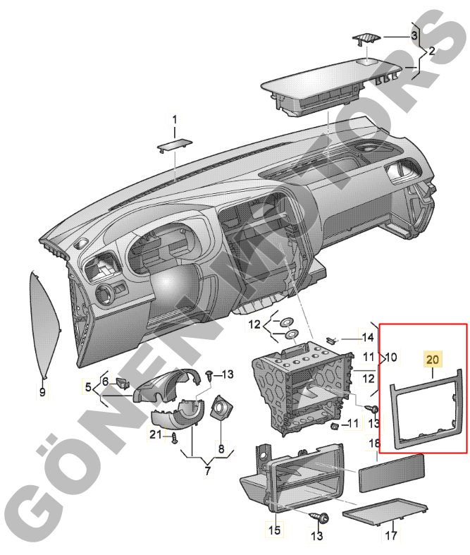 6R0 858 069 OEM parça koduna sahip bu ürün, orijinal ölçülerde üretilmiş olup teyp / multimedya ünitesiyle birebir uyumludur.