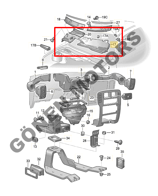Ön cam altı, sileceklerin bulunduğu bölümün üst plastik ızgarası