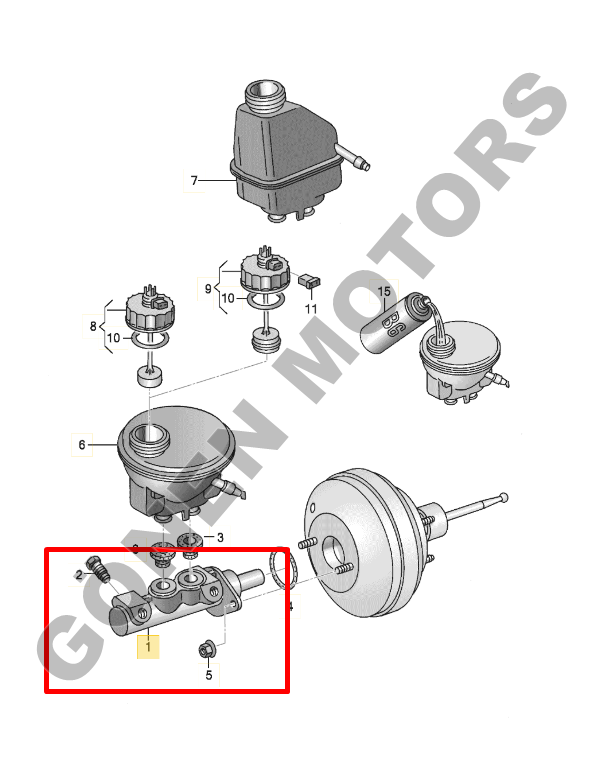 Volkswagen araçlar için tasarlanmış fren ana merkezi / fren master silindiri, 1J1 611 019 parça numarasıyla birebir uyumludur.